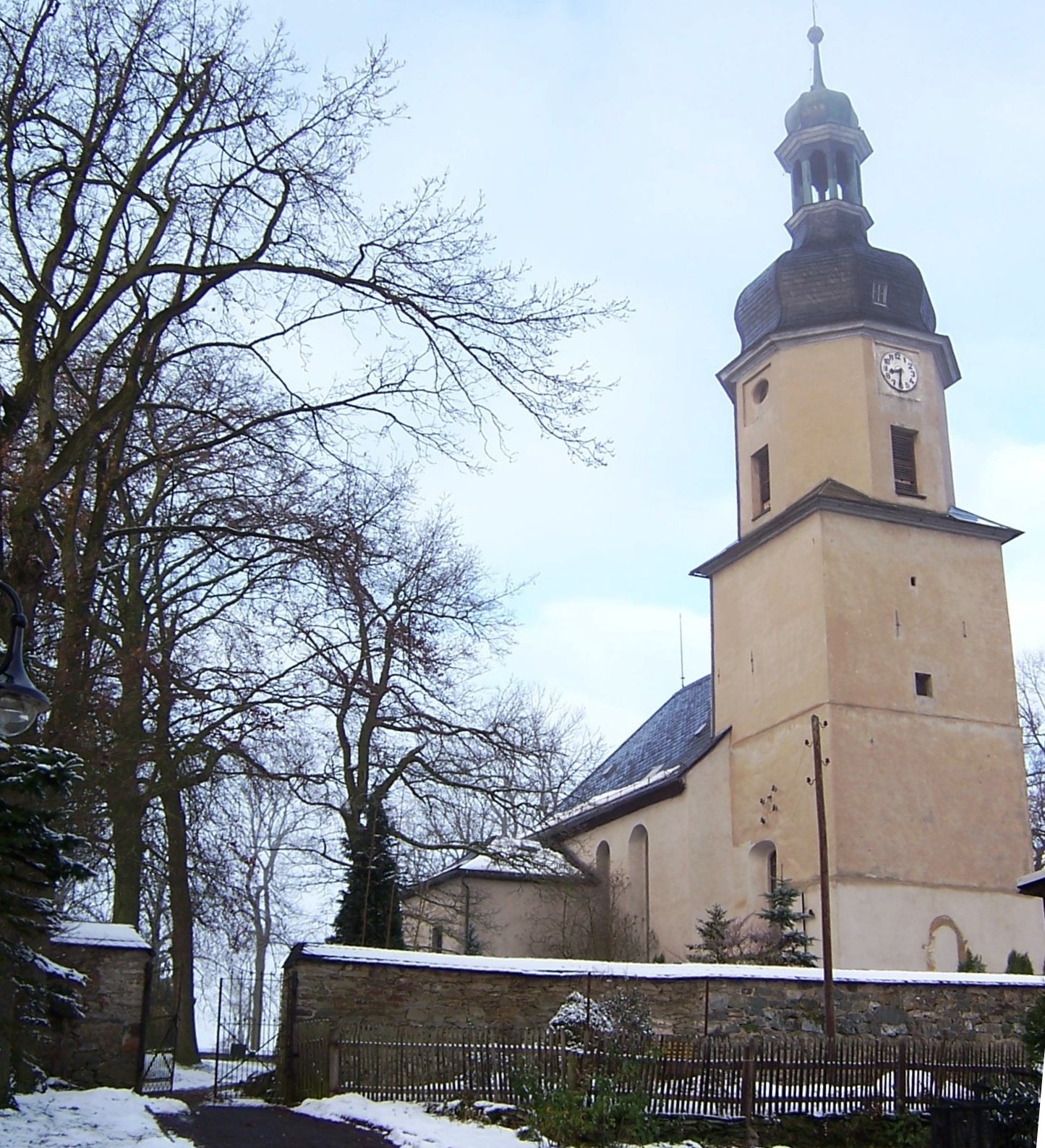 - Abschließend sei noch einer der berühmtesten Einwohner der Kirchgemeinde erwähnt: Nikolaus Schmidt, der gelehrte Bauer von Rothenacker (1606- 1671), Künzel genannt, dessen Grab sich seit fast 350 Jahren auf dem angrenzenden Friedhof befindet, dessen Elternhaus in Rothenacker besichtigt werden kann u. dessen wissenschaftliches Stammbuch von 1645 sich im Besitz der Kirchgemeinde befindet.
